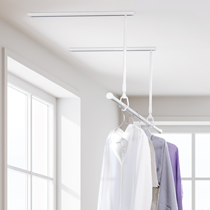 室内の天井に取付けてお使いいただく室内物干金物です。室内空間のデッドスペースになりやすい天井部分を、有効活用していただけます。高い場所に干せるので、小さいお子様の手が届かず安心。使わないときは簡単に収納できるので、インテリアも損ないません。