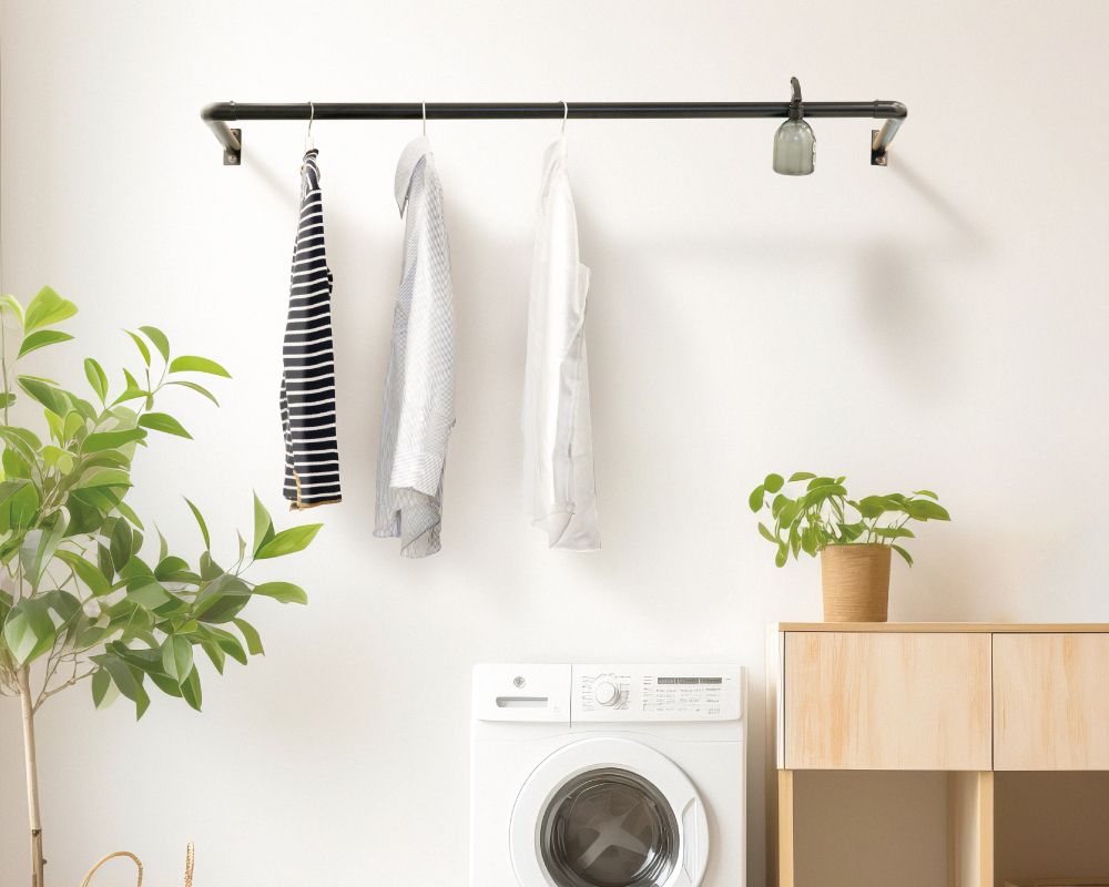 洗濯物を掛けたり、オープンクローゼットとしての実用性と、オーナメ ントなどを飾るインテリア性も兼ね備えています。 屋外への取付けもでき、シェードをかけることで、日差しや暑さ対策に も活用できます。