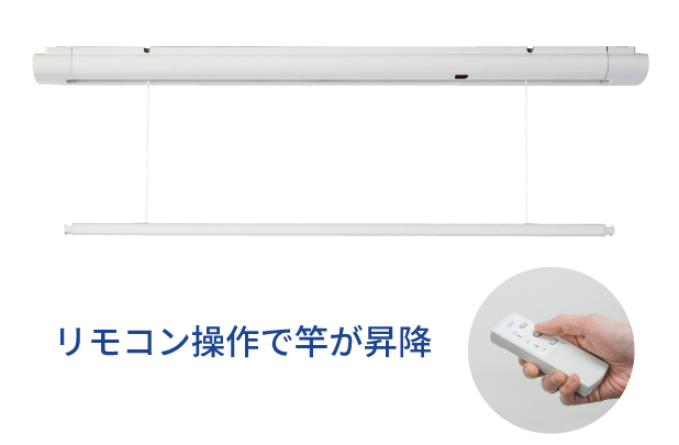 洗濯物をかけたままリモコン操作で、竿を昇降できる室内物干し